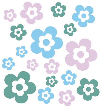 Jedes der drei Blumen-Sets besteht aus 6 Blüten. Die kleinste Blüte ist jeweils 2 cm groß, die größte Blumen jeweils 6 cm.
