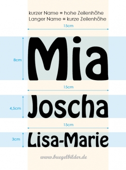 Extragroße Namen erhalten Sie auch in 25 cm oder 30 cm Breite.