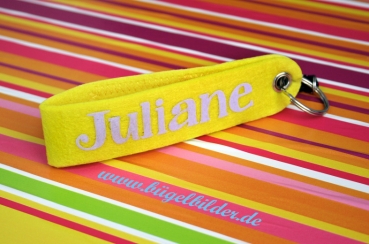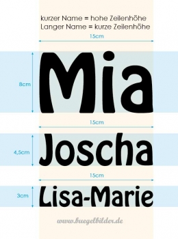 Kleiner Name: circa 1 cm hoch, je nach Buchstabenanzahl maximal 6,5 cm breit.