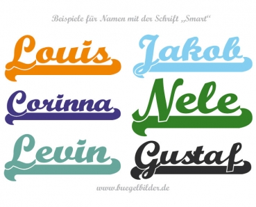 Samtweiche Velours-Buchstaben zum Aufbügeln für T-Shirts, Jacken, Taschen, Turnbeutel - überall, wo ein Name Sinn macht und gut aussehen soll.
