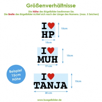 Für das zweizeilige Motiv "I-Love-Name" inklusive dem Herz können Sie zwischen folgenden Höhen wählen: