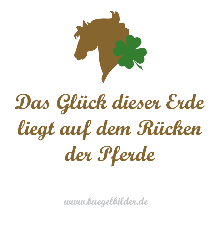 Spruch in schöner Schreibschrift: Das Glück dieser Erde liegt auf dem Rücken der Pferde.