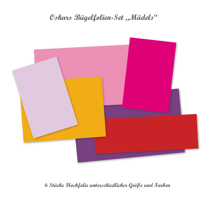6 Stücke aus bunter Flockfolie in typischen Farben, die Mädchen lieben.