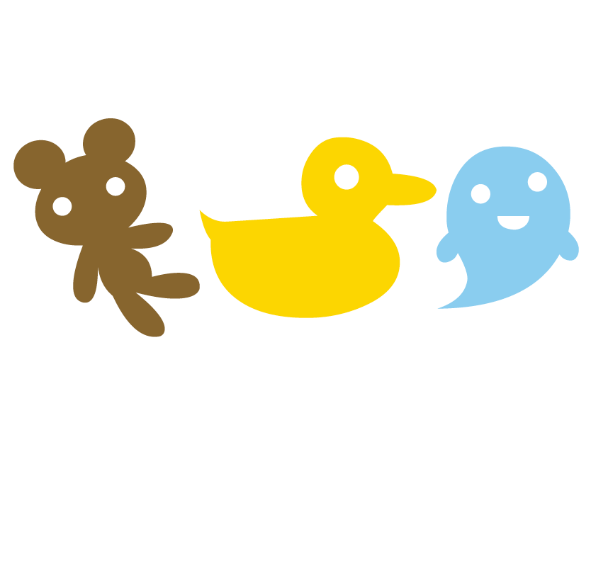 Farben: Brauner Teddy, gelbe Ente, hellblauer Wassertropfen.