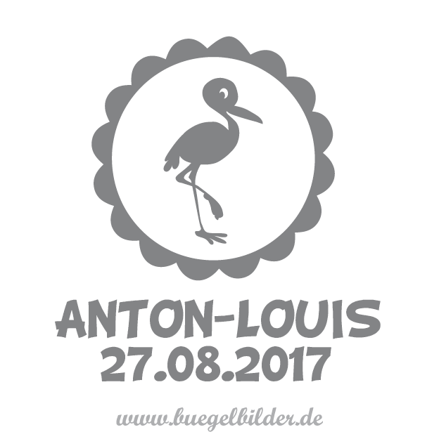 Ein süßer Storch in einer zauberhaften Rosette. Darunter befindet sich der Name sowie Geburtstag des frischgebackenen Erdenbürgers.
