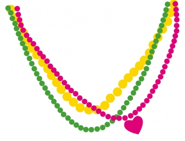 Fertiges 3er-Ketten-Set in drei fröhlichen Farben. Die magentafarbene Kette ziert ein Herz.