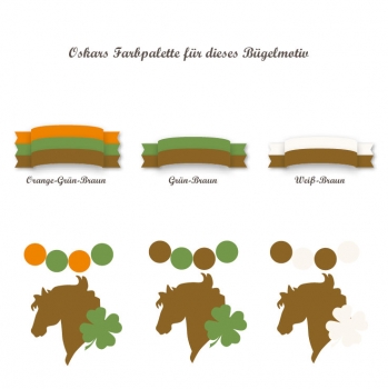 Orange-Grün-Braun, Grün-Braun oder Weiß-Braun. Die Farben werden nacheinander aufgebügelt.