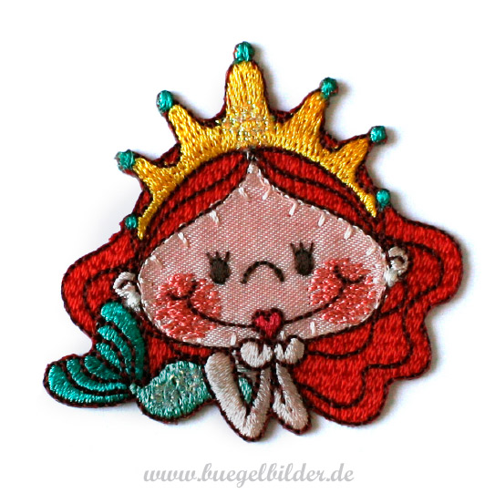 Diese hübsche Meerjungfrau ist aufwendig in vielen bunten Farben gestickt und einfach zum Verlieben schön.