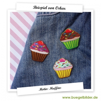 Süßes Set aus 3 kleinen Muffintörtchen zum Aufbügeln.