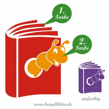 Farbe des Bücherwurms: Das Motiv ist zweifarbig, die Farben werden nacheinander aufgebügelt.