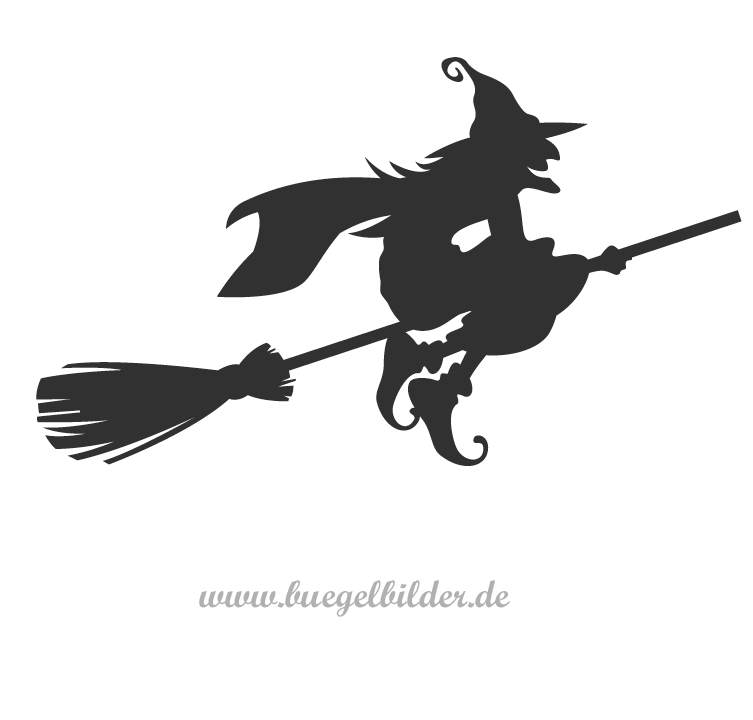 Oskars Hexe zum Aufbügeln ist 17 cm breit und 8 cm hoch.