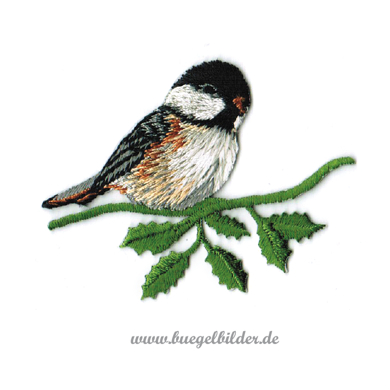 Der gestickte Vogel zum Aufbuegeln ist 7 cm breit und 5 cm hoch.