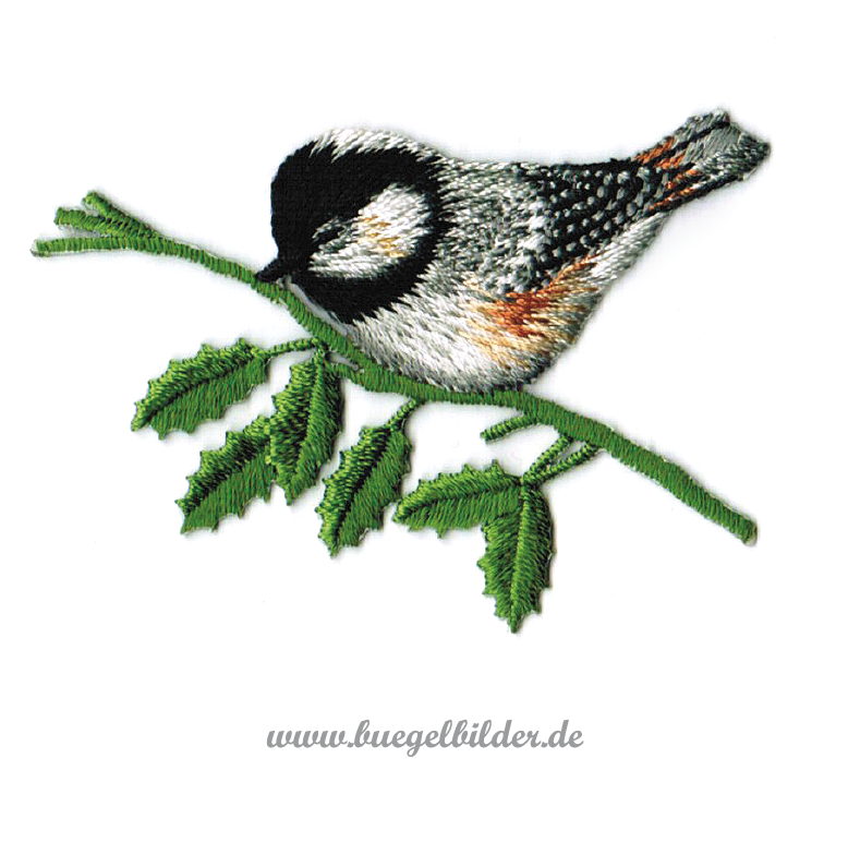 Der gestickte Vogel zum Aufbuegeln ist 7 cm breit und 5 cm hoch.