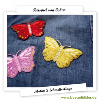 Das Bügelbild "Schmetterling" ist ca. 4 cm hoch und ca. 6 cm breit.