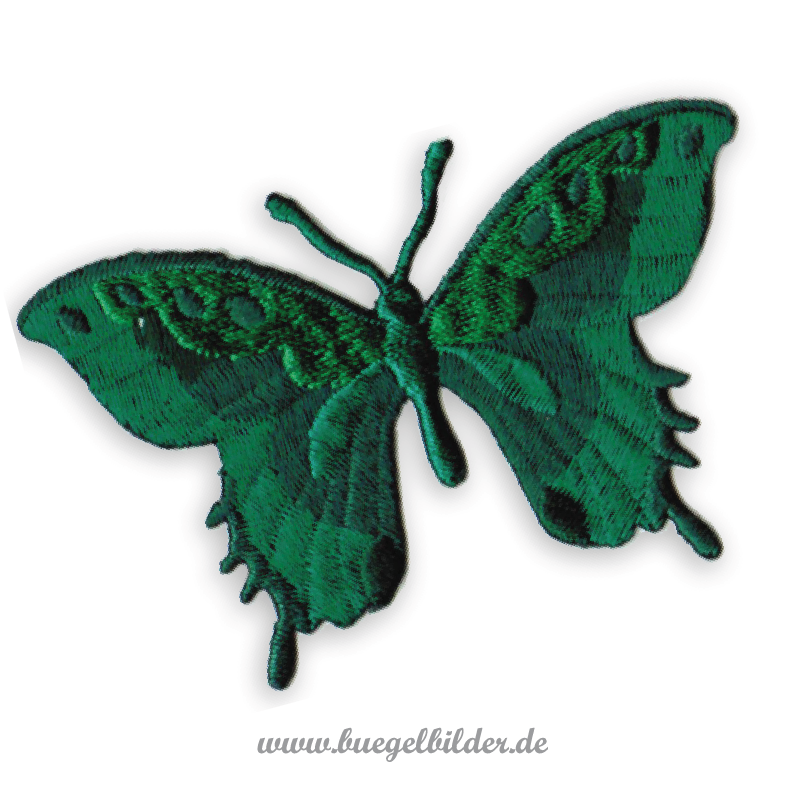 Dieser Schmetterling zum Aufbügeln ist in drei wunderbar abgestimmten dunkelgrünen Farbnuancen gestickt.