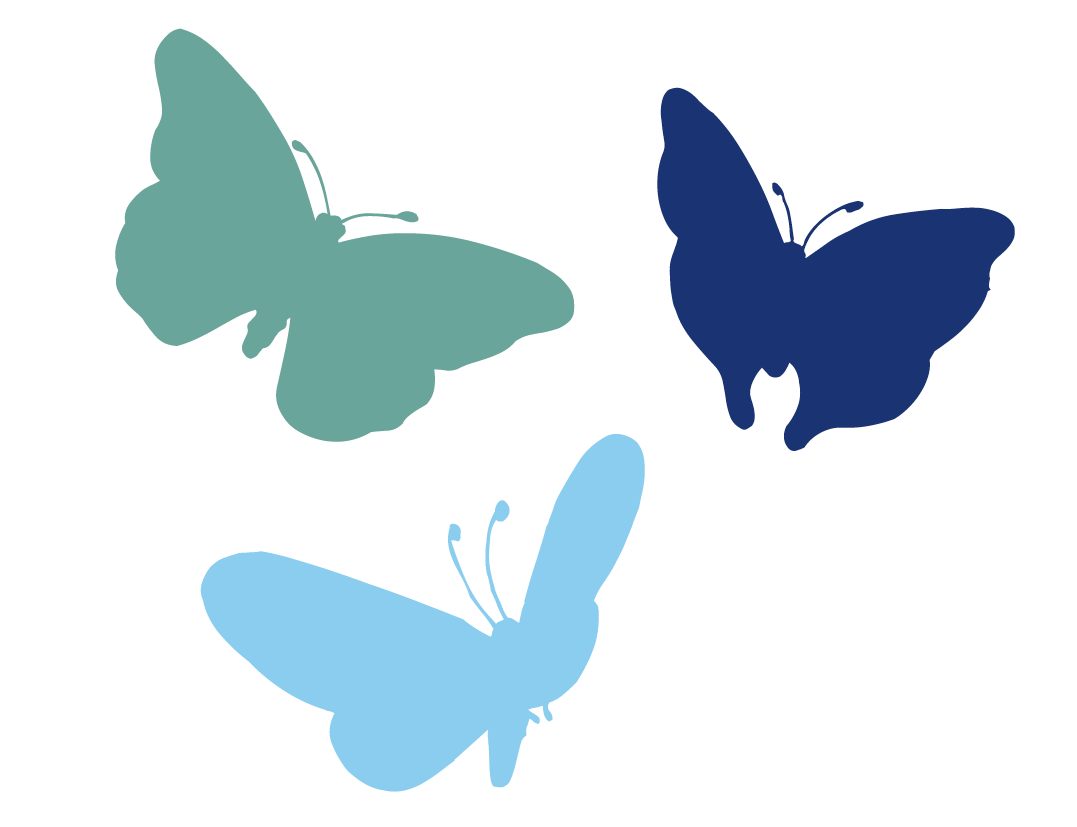 3 Schmetterlinge in unterschiedlichen Farben.