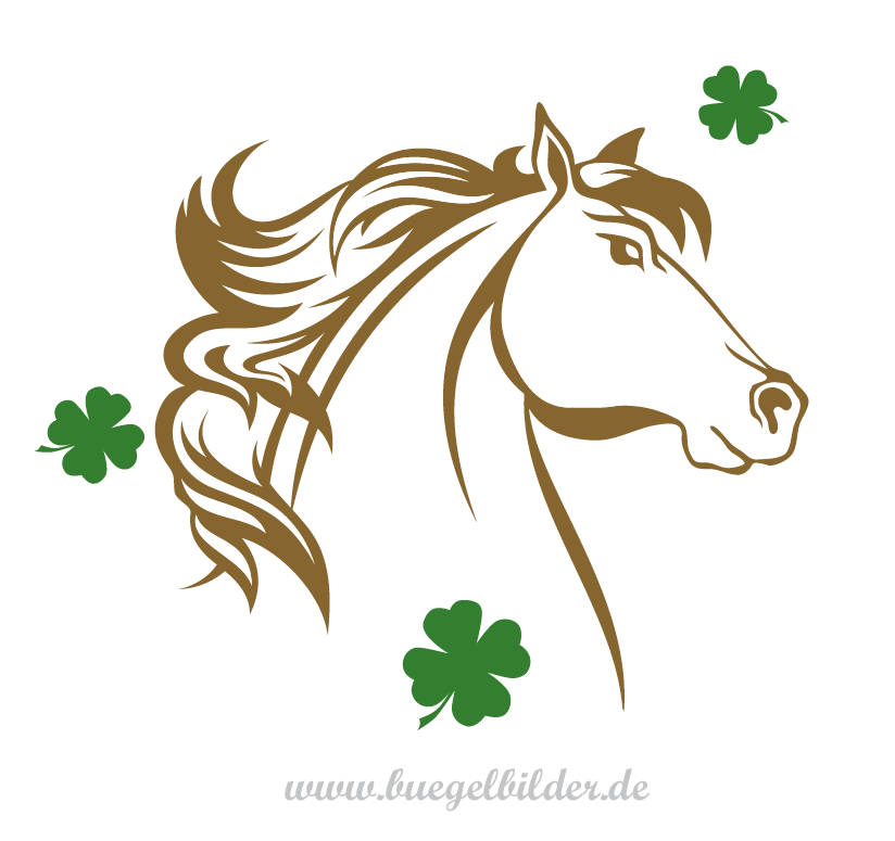 Die drei Kleeblätter sind immer grün und können nach belieben um das Pferd dekoriert werden.