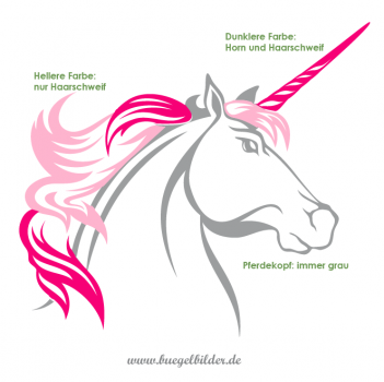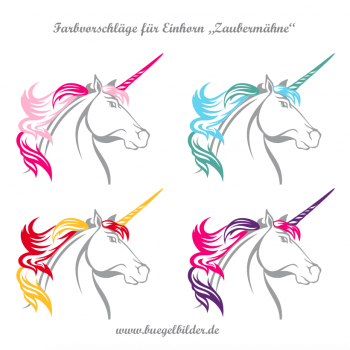 Das Einhorn "Zaubermähne" ist dreifarbig. Die einzelnen Farben werden nacheinander aufgebügelt.