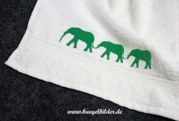 Größe: Das Bügelbild mit den Elefanten ist circa 17 cm breit und circa 5 cm hoch.