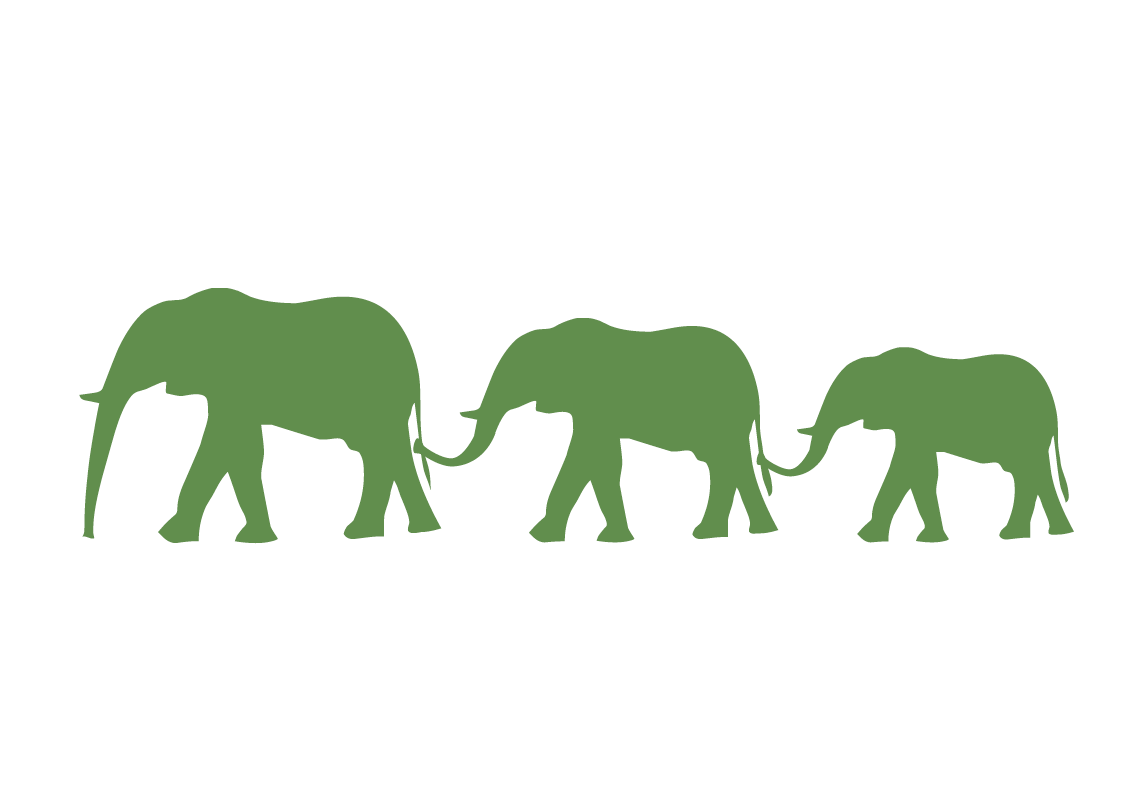 Liebevoll gestaltete Elefantenfamilie. Die Elefanten halten sich jeweils am Schwanz des anderen Elefanten fest.
