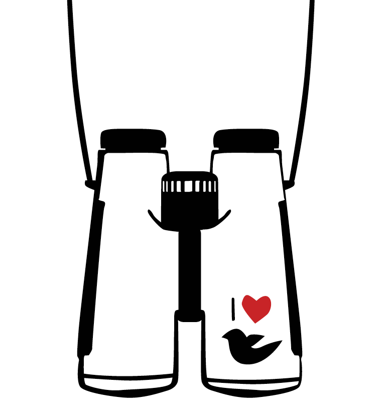 Der Herz im Fernglas "Ich liebe Vögel" ist immer rot.
