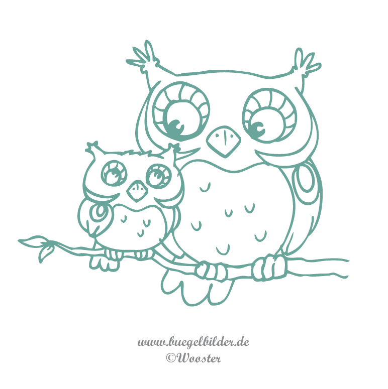Die Eule und ihr Eulchen zum Aufbügeln sind zusammen 19 cm breit und 15 cm hoch.