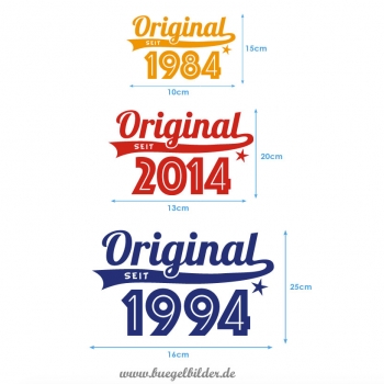 Der Klassiker für die sportlichen Geburtstagskinder ist das Motiv mit dem Schriftzug "Original seit". Das Motiv erhalten Sie in drei verschiedenen Größen, damit es ebenso gut auf Baby-Shirts wie Erwachsenen-Hoodies passt.