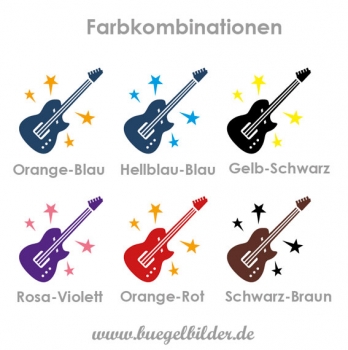 Bitte wählen Sie eine Farbkombination. Die erste Farbe steht für die Farbauswahl der Sterne, die zweite für die der E-Gitarre. Die gezeigten Farbkombinationen sind nur Beispiele.