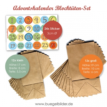 In diesen Blockboden-Tüten aus Kraftpapier in zwei unterschiedlichen Größen lassen sich schnell allerlei Kleinigkeiten verpacken, um als Adventskalender die Wartezeit auf das Weihnachtsfest zu verkürzen. Sie sind schlicht, können aber noch raffiniert verziert werden. Machen Sie es sich leicht: Mit diesen Blockboden-Beutel aus Kraftpapier und der Auswahl an Zahlen-Aufklebern in verschiedenen Designs haben Sie im Nu einen wunderschönen Adventskalender gestaltet.