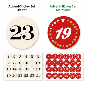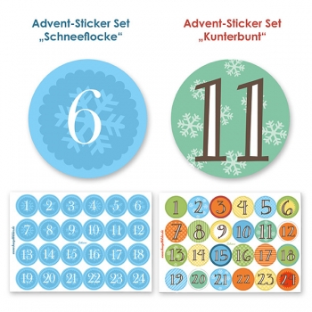 - 1 Bogen Zahlen-Sticker 1-24 (Durchmesser 3 cm) nach Wahl