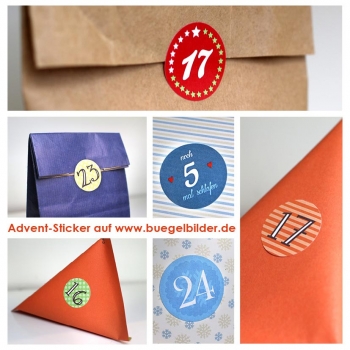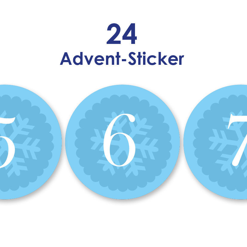 Alle Advent-Sticker 1-24 haben einen Durchmesser von 3 cm.