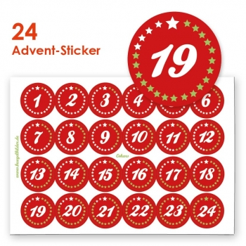 Alle Advent-Sticker 1-24 haben einen Durchmesser von 3 cm.