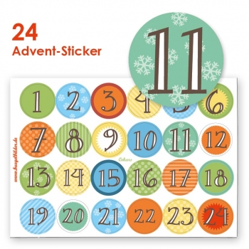 24 kunterbunte Zahlen-Aufkleber für Adventskalender