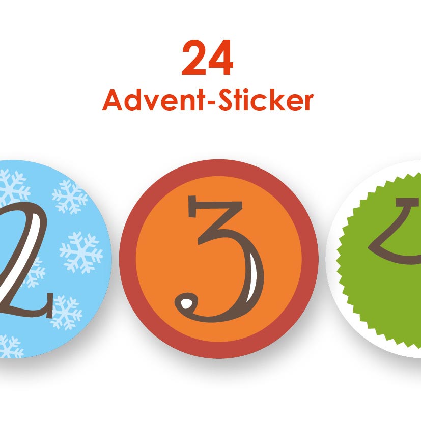 Alle Advent-Sticker 1-24 haben einen Durchmesser von 3 cm.