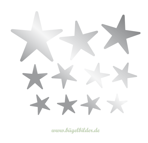 Der große Stern ist ca. 6 cm breit und hoch. Der kleinste Stern ist ca. 2 cm breit und hoch.