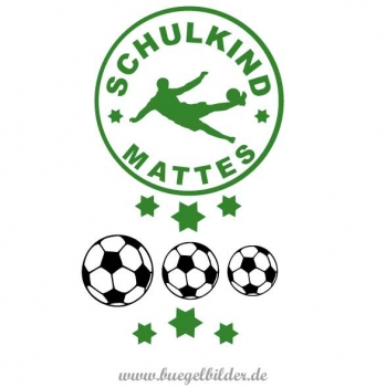 - großes Hauptmotiv (16 cm im Durchmesser) mit einem Fußballer, dem aktuellen Jahr und individuellem Namen des Schulkindes. Den Wunschnamen geben Sie bitte unter dieser Artikelbeschreibung ein.