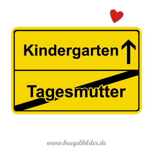Straßenschild als Bügelbild: Tagesmutter / Kindergarten