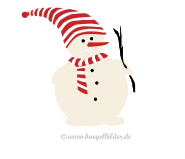 Lustiger Schneemann mit Zipfelmütze und Ringelschal.