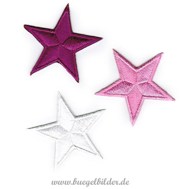 Set mit 3 bunten gestickten Sterne in den Farben