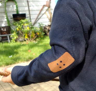 Ohne großen Aufwand, Nadel und Zwirn: Oskars Knie- und Ellenbogen-Schoner flicken kleine Löcher und Abriebstellen auf Textilien wie Baumwolle.
