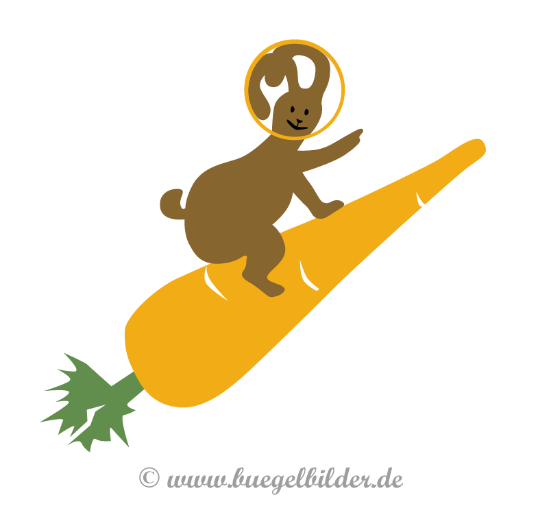 Das Motiv ist 4-farbig: Orangefarbene Karotte, grüne Stiele, brauner Hase und schwarze Gesichtszüge.