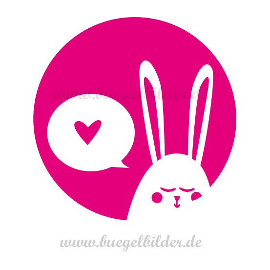 Dieses Bügelbild zeigt unseren Hasen ganz verliebt. Schüchtern senkt er den Blick und seine Wangen sind gerötet. Statt vieler Wort trägt er sein Herz auf der Zunge.